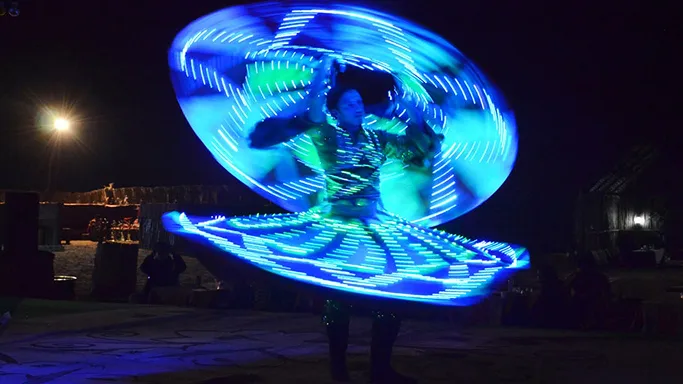 - Have BBQ dinner accompanied with belly dance and other entertainments around you. Rest and gaze at the stars. You’ll camp overnight in the desert of Abu Dhabi.